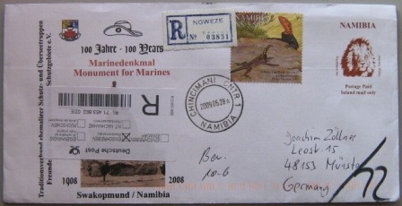 Chincimani Cntr 1, 2009.05.28-A Auf Rückseite: Windhoke MLPG 2 keine 80 Einschreiben in 3 Jahren? 2006 Nr. 3754 - 2009 Nr.3832  |