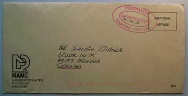 Grootfontein Postmaster Namibia Post Ltd. 00.05.16 (hs)  |