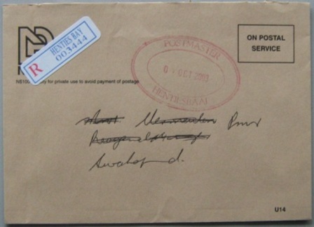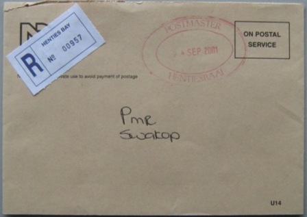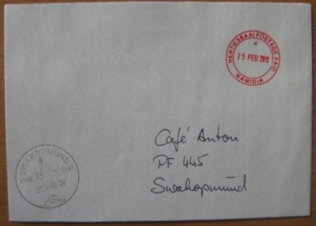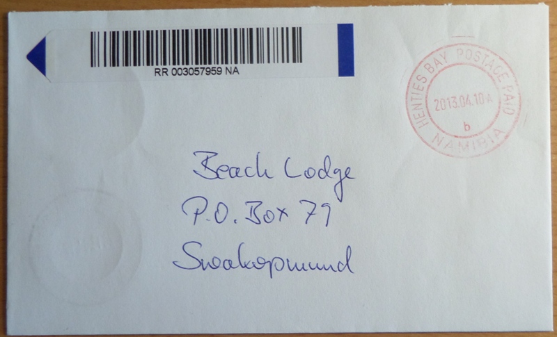 | Henties Bay Postage Paid 2013.04.10 Swakopmund 6 2013.04.13  |