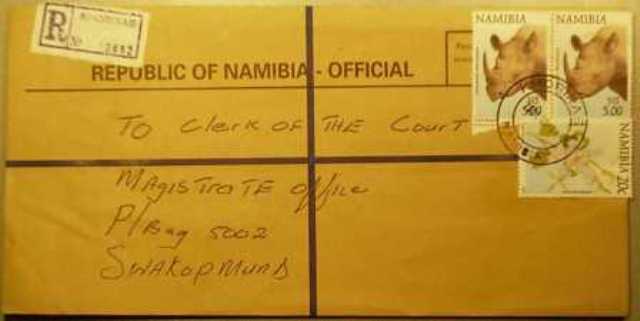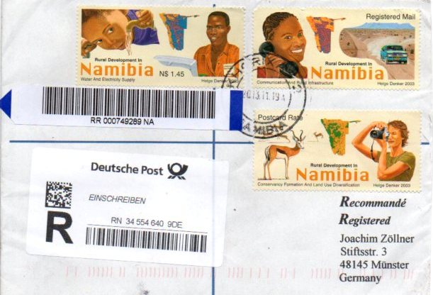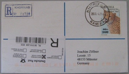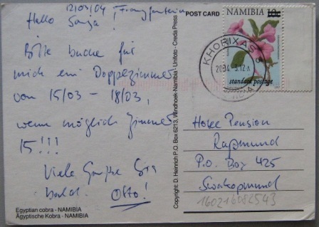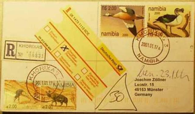 Khorixas 3 - 2001.01.17 A (Fransfontein) Rückseite: Windhoek MLPG 1 2001.01.19 A  |