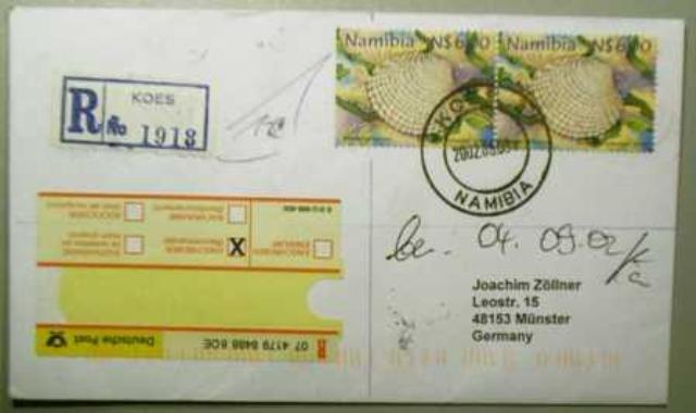Koës 1 - 2002.08.08 A on back: Keetmannshoop 6, 2002.08.30, Windhoek MLPG 2002.08.31  |