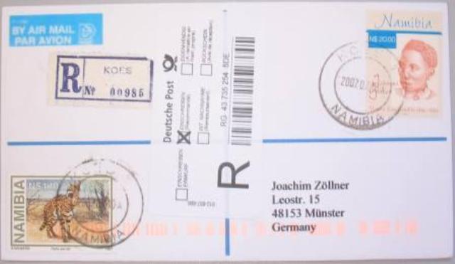Koës 1 - 2007.07.10 A on back: Windhoek MLPG 2 - 2007.07.13  |