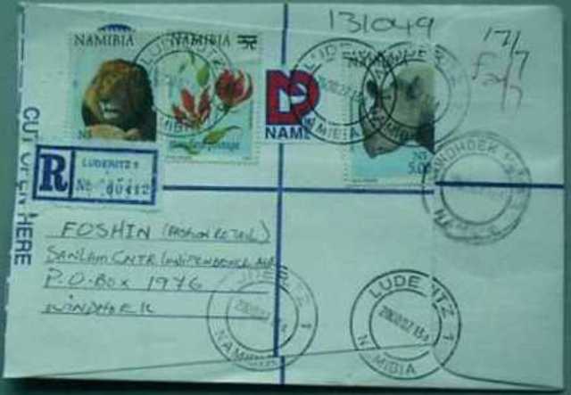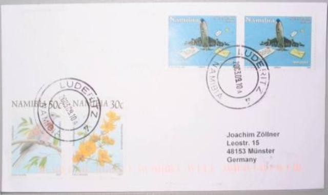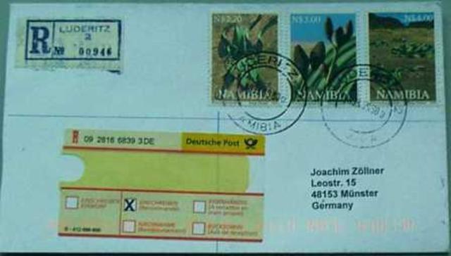 Poststempel 1,2,3,4,5,6,7,PP (252-259/00) Luderitz 7 wurde vom 01.05.2002 bis 03.2003 im Nest Hotel verwendet Sonderstempel: Gedenken 1914-1915 Lüderitzbucht  |