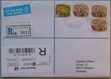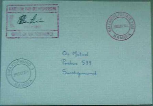 Maltahöhe Postage Paid 2003.01.14 C Vorderseite: Swakopmund 5 - 2003.01.27 A, Cachet  |
