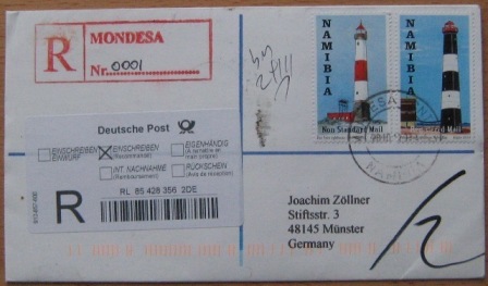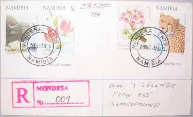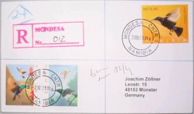 R-Lable Swakopmund handschriftlich geändert Mondesa Kastenstempel ab 11/2005, aber 31.03.2006 erst Nr. 9 ?)