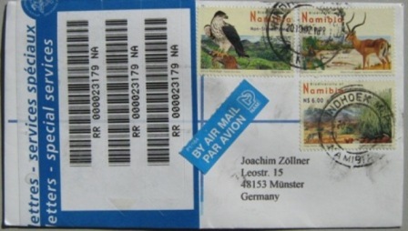 Im Februar 2010 wurde ein Brief auf Verdacht An Nakayala gesandt. Zurück kam, ohne weitere Erklärung, ein Einschreibebrief mit Windhoek 8? Klärungebedarf  |