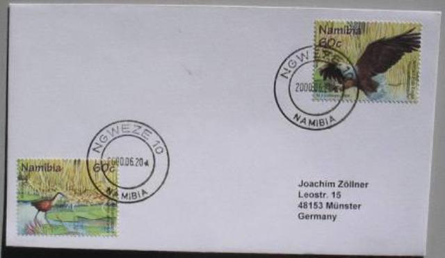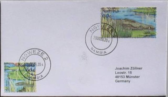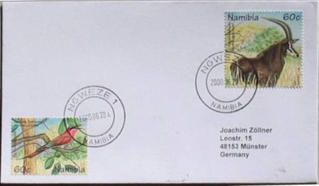 Postmarks 1,2,3,4,5,6,7,8,9, 10,11,12,13,PP (175-188/00) neue Stempel ab 22.02.00 (WPS 06/00) Ngweze 3 soll in Katima Mulilo verwendet werden Ngweze 5 wurde vom 04.01.2000 bis 08.11.2002 in Katima Mulilo verwendet Ngweze 5 wird seit dem 09.11.2002 in Cincimani verwendet. Ngweze 6 wird seit 2000 in Bukalo verwendet. Ngweze 8 wird seit 2000 in Mayuni verwendet.  |
