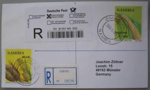 Omaruru 4 - 2005.11.24 B Auf Rückseite: Windhoek MLPG 2 - 2005.11.29 A