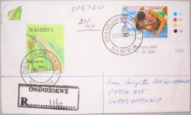 Ondangwa 5 - 2004.09.20 - Verwendung in Onandjokwe Auf Rückseite: Windhoek MLPG 2004.09.22  |