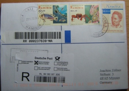 Ondangwa 9, 2005.11.18 - Verwendung in Onankali Auf Rückseite: Windhoerk MLGP 2, 2005.11.21