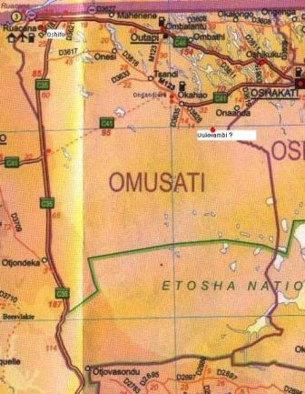 Der Ort liegt an der Straße M123 (D3612) zwischen Tsandi und Okahao in der Region Omusati. (siehe Karte)  |