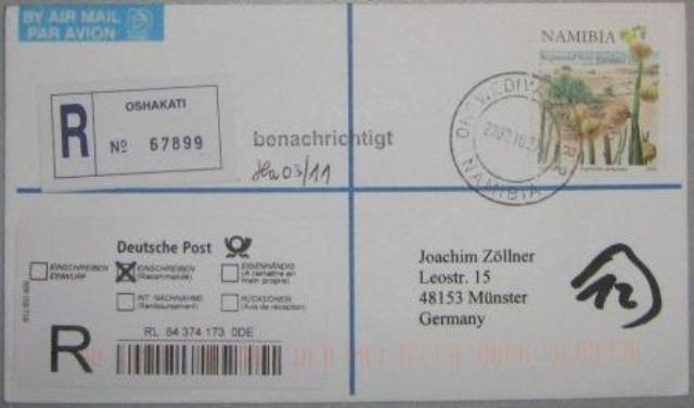 Oshakati 12 - 2006.04.10.A, Verwendung in Ongwediva Auf Rückseite: Oshakati 8 - 2006.04.11-A, Windhoek MLPG  |