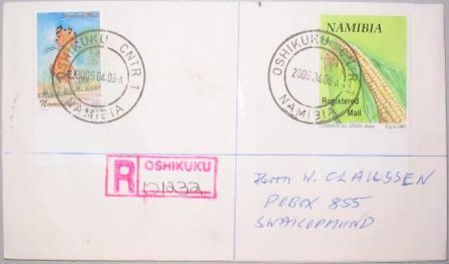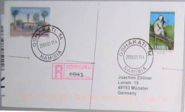 Oshakati 14 - 2005.01.11 Auf Rückseite:, Oshikuku, The Postmaster, Oshakati 8 - 2005.01.15, Windhoek MLPG 4 - 2005.01.17  |