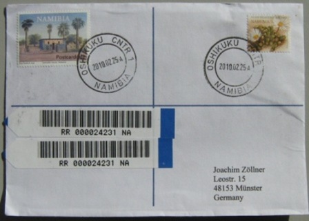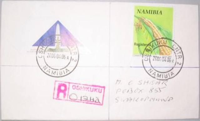 Am 09.12.2002 wurde ein Counter Point eröffnet, verwendet wurde der Poststempel Oshakati 14, bis zum 21.04.2006. Der eigene Stempel Oshikuku Cntr 1 wird regulär ab dem 22.04.2006 verwendet. Der Stempel Oshikuku 2 wird zunächst nicht regulär verwendet, es gibt aber philatelistische Ersttagsbriefe vom 06.04.2006, so wie auch vom Stempel 1.  |