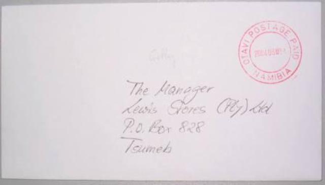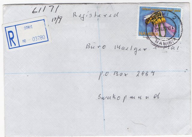 | Otavi 4, 2011.03.12 A Rückseite Postmaster, Windhoek MLPG  |