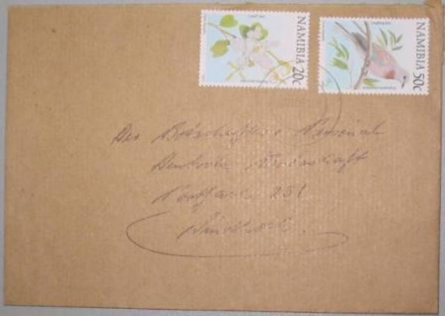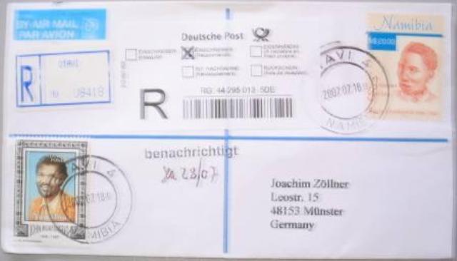 ohne Poststempel, nur Einschreibezettel Kombat  |