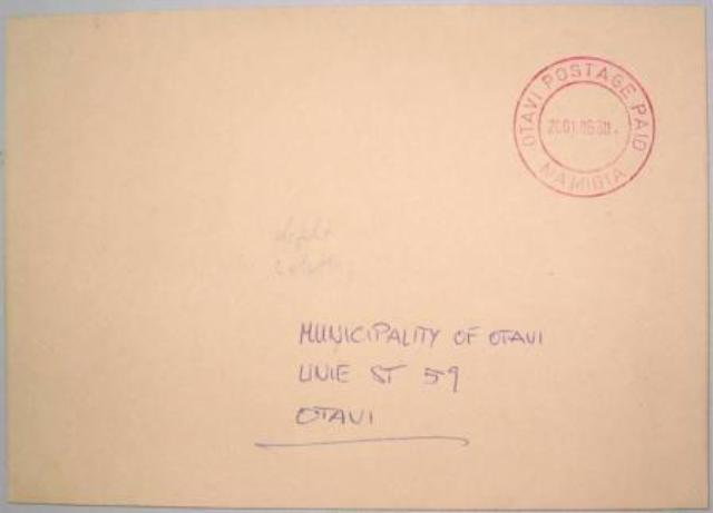 Otavi 1 - 2001.07.16 On Back: Windhoek MLPG 1 2001.07.17  |