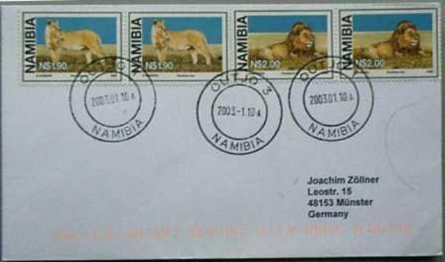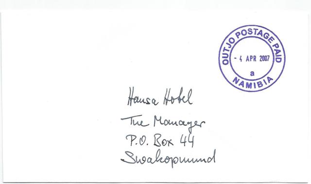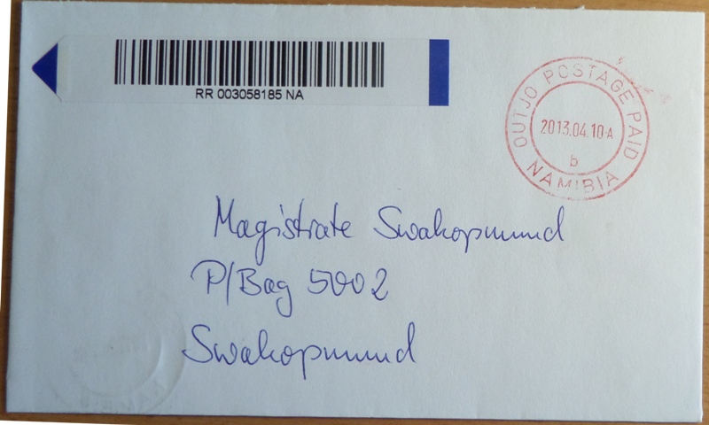 Outjo Postage Paid 2013.04.10 Rückseite Swakopmund 2013.04.15  |