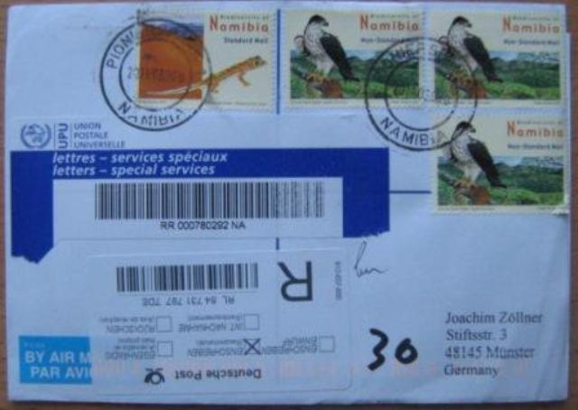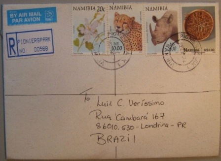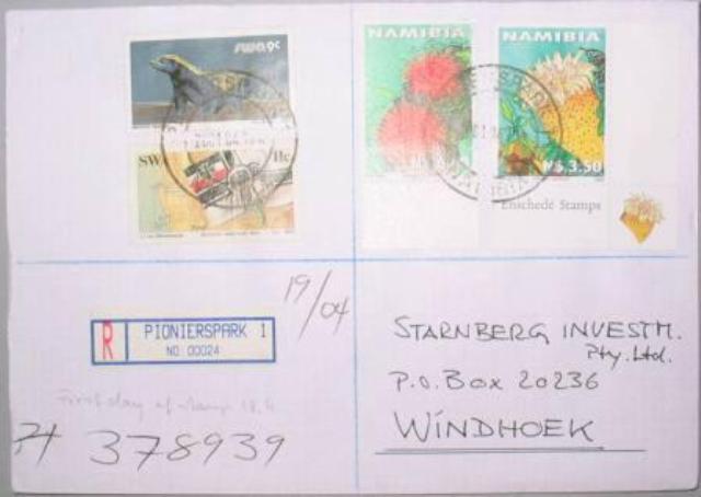 Poststempel 1, 2, 3 Pionierspark 3 wurde vom 06.01.2003 bis 05.05.2004 in Cimbebasia verwendet  |