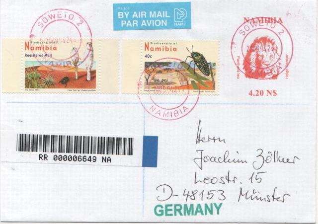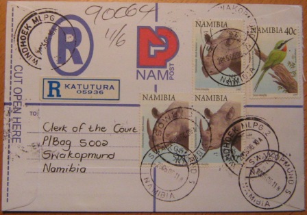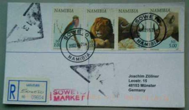 Poststempel Soweto Market 1 (32/00) im September 2001 gestohlen Katatura 4 wurde ab 09 - 12/01 verwendet, als 2. Stempel auch danach Soweto ohne Nummer ab 08.12.2001 Soweto 2 ist bestellt (WPS 02/2007), soll seit Juni 2007 im Einsatz sein  |