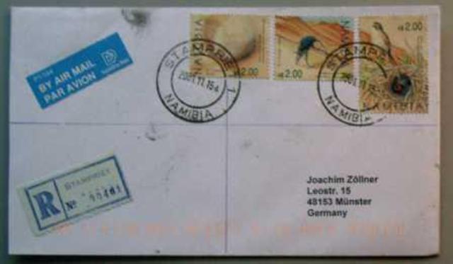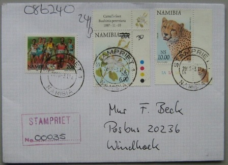 Stampriet 1 - 2001.11.15 A Rückseite: Mariental 3, 2001.11.20, Windhoek MLPG 1  |