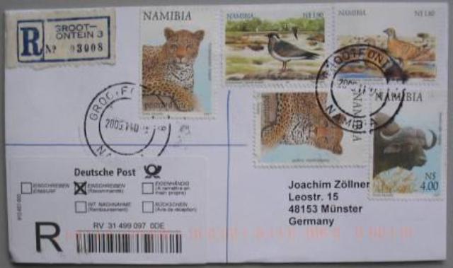 Grootfontein 8 - 2005.11.07 Verwendung - Tsumkwe Auf Rückseite: Grootfonein 5 - 2005.11.10, Windhoek - 11.11.2005  |