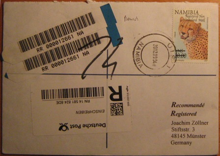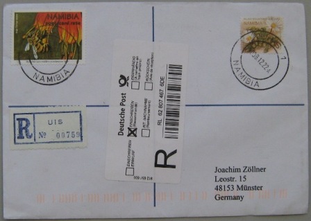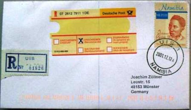 Uis 1 - 2001.12.12 Rückseite: Otjiwarongo 5, 2001.12.17, Windhoek MLPG 1, 2001.12.18  |