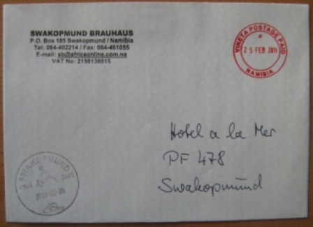 Vineta Postage Paid a - 25 Feb 2011 Vorderseite: Swakopmund 26-02-2011  |