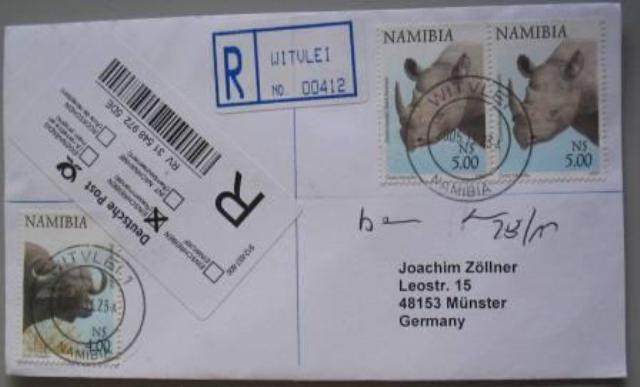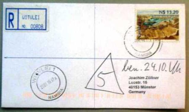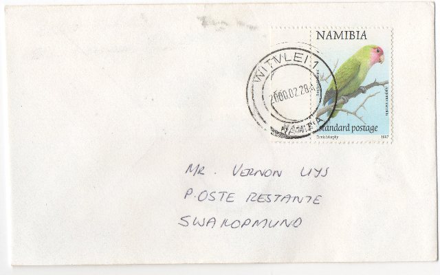| Witvlei, alter Stempel, verwendet Januar 2000 | Witvlei - 2000.02.28 , Swakopmund: 2000.01.06 (trotz falscher Einstellung Ersttag) |